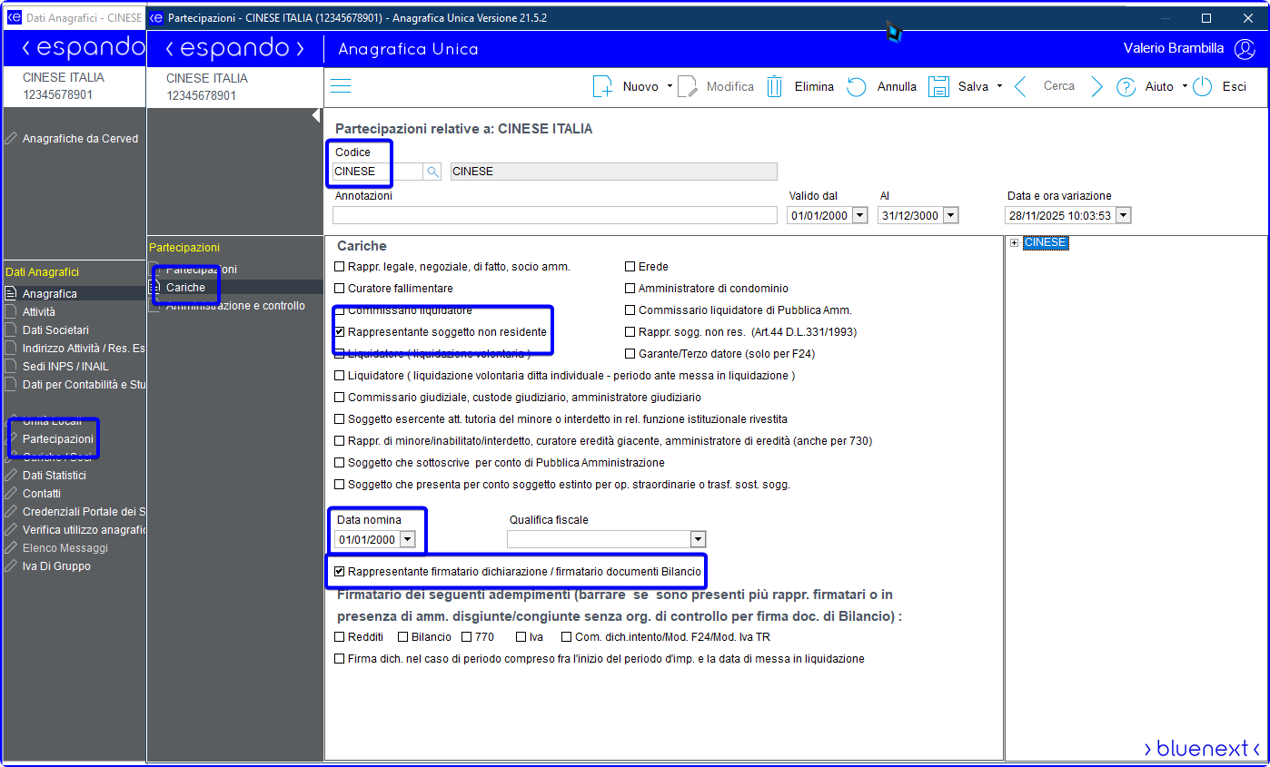 2. In Anagrafica Unica inserire il soggetto Rappresentante fiscale CEE (nell’esempio si tratta di soggetto con partita IVA italiana)